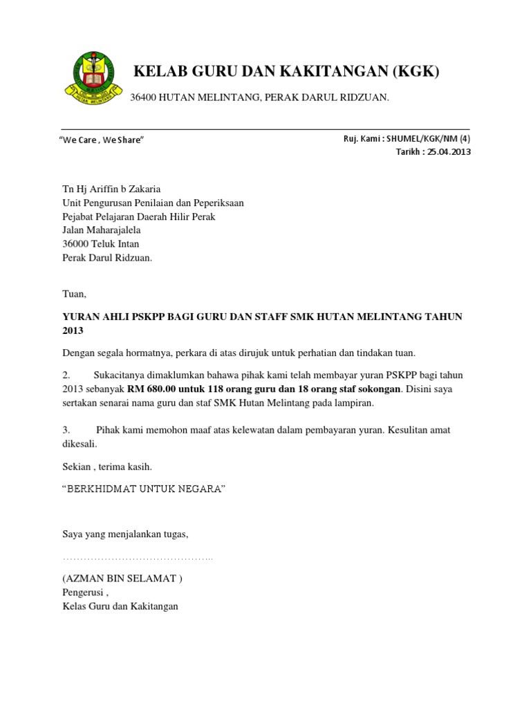 Surat Rasmi Tidak Hadir Ke Sekolah Atas Urusan Keluarga Dan Sebagainya