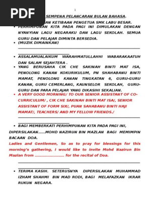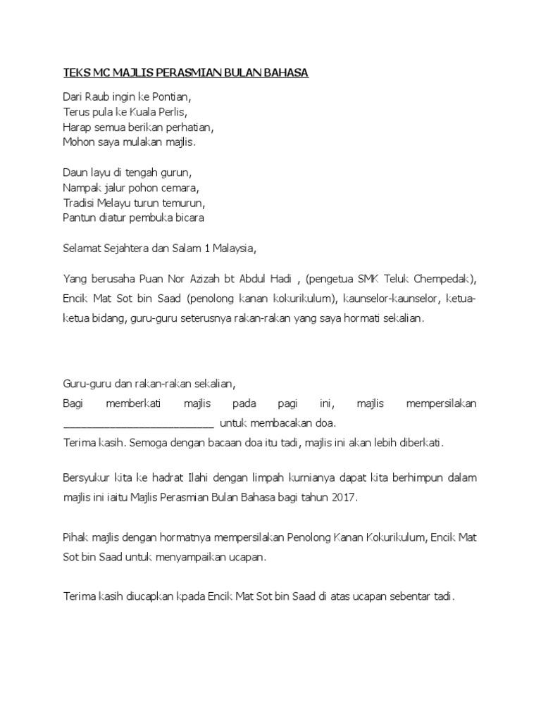 Teks Pengacara Sempena Pelancaran Bulan Bahasa Bm Bi