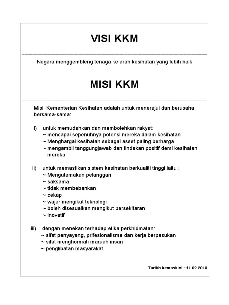 Visi Dan Misi Kementerian Kesihatan Malaysia
